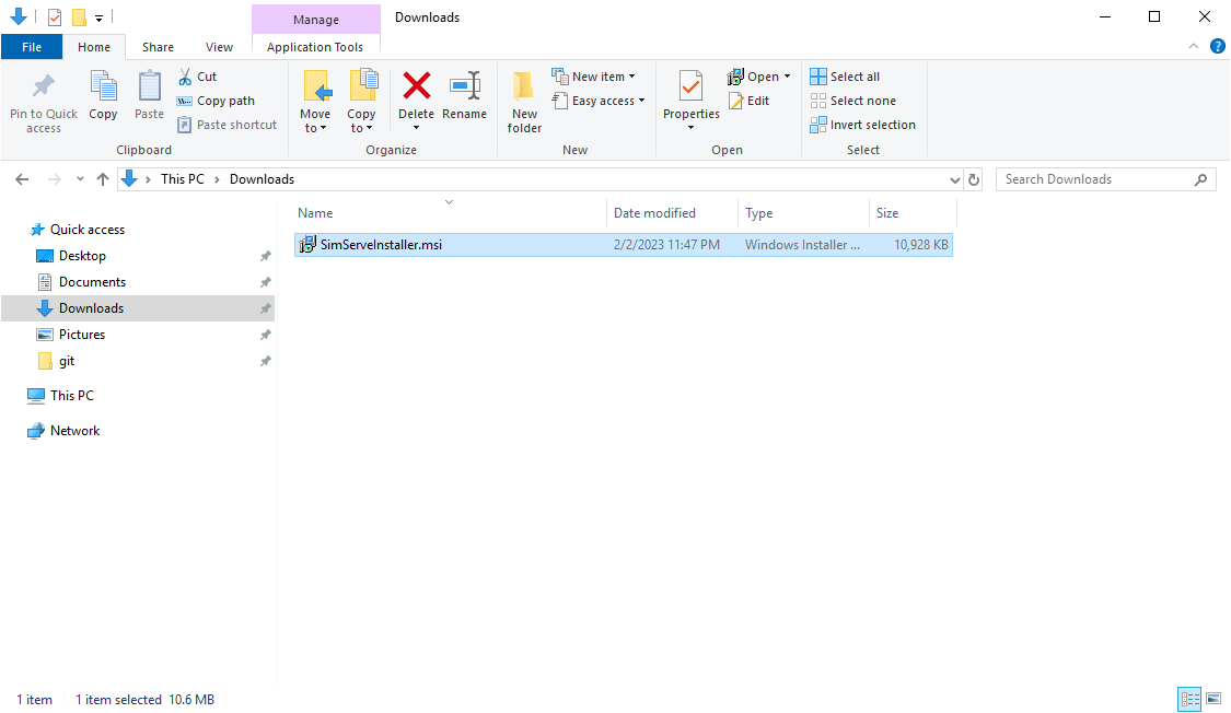 by SimServe and downloaded by your browser to your downloads folder as shown