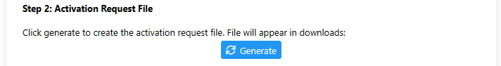 - In step two, click the "Generate" button. An "activation request file" will be generated