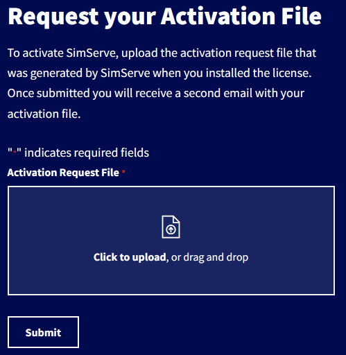 - Return to the SimServe web interface. In step four of the "Activation Popup", upload the